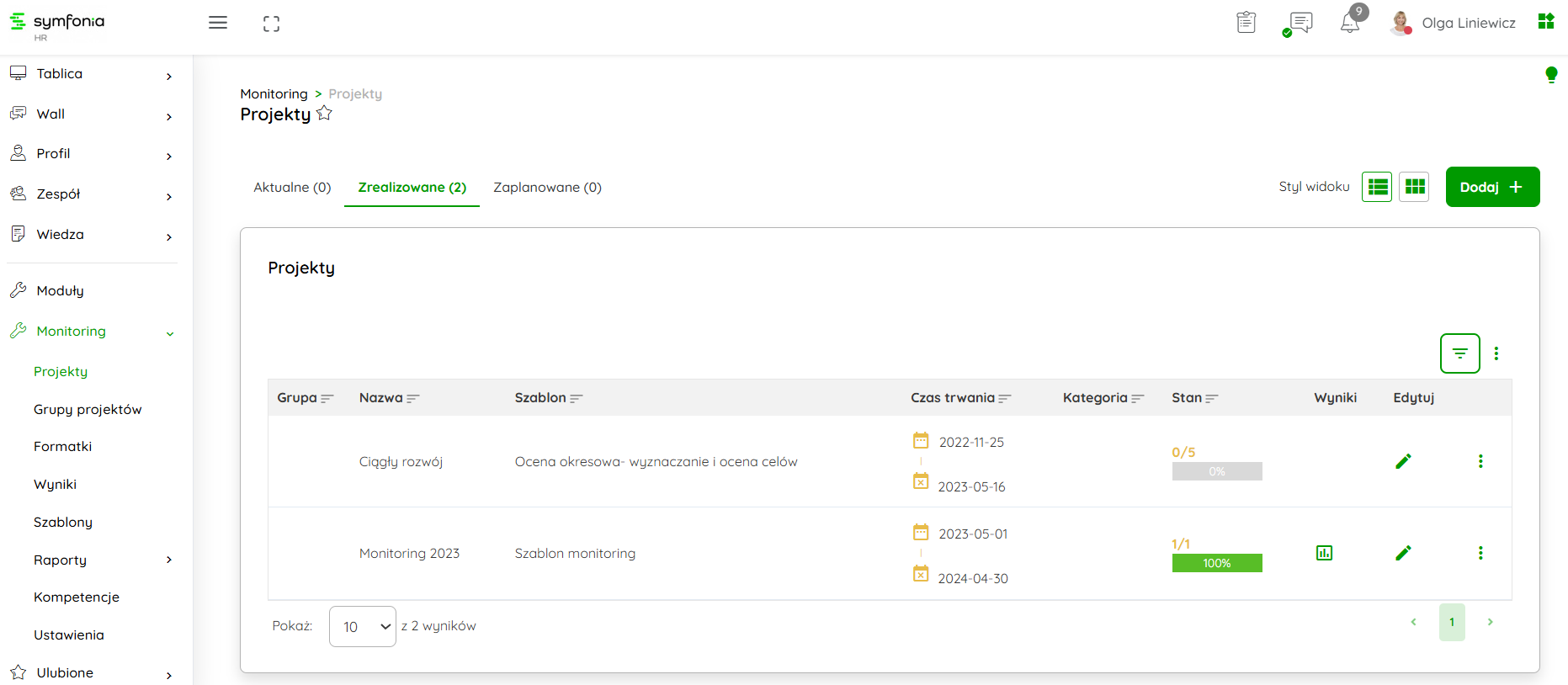 Dzięki wykorzystaniu panelu monitoringu w Symfonii HR masz możliwość zaprojektowania przebiegu monitoringu począwszy od zaplanowania relacji pomiędzy pracownikami (oceniany - oceniający), poprzez wybór ocenianych kompetencji, aż do dokonania ocen i analizy wyników. Decydując się na przeprowadzenie monitoringu istnieje możliwość całkowicie samodzielnego przejścia przez poszczególne etapy opracowania i realizacji.