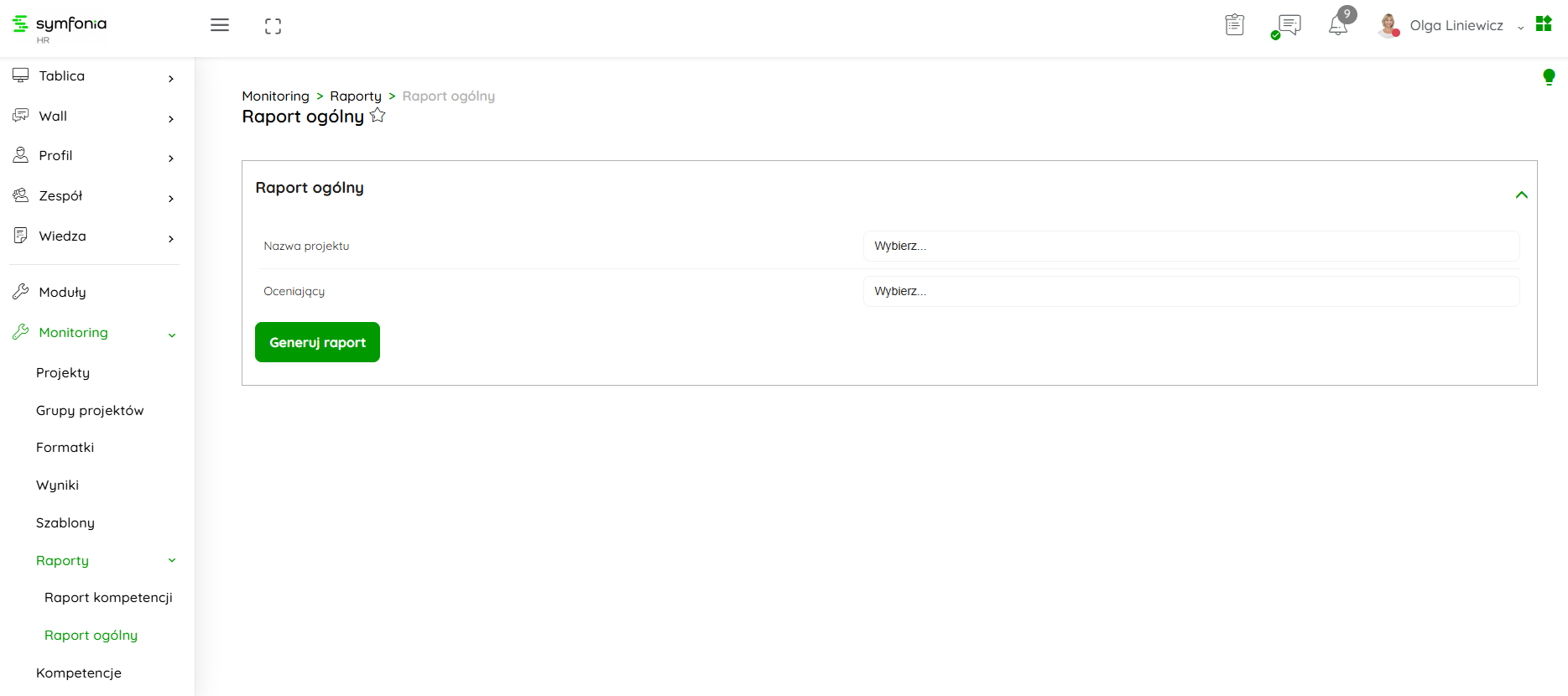 Raporty to miejsce, gdzie uzyskasz informacje dotyczące badań przeprowadzonych na danych pracownikach, działach czy grupach projektowych.