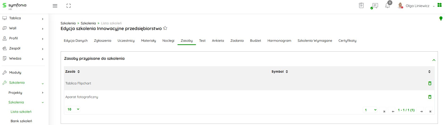 - Udaj się do zakładki Zasoby w edycji szkolenia