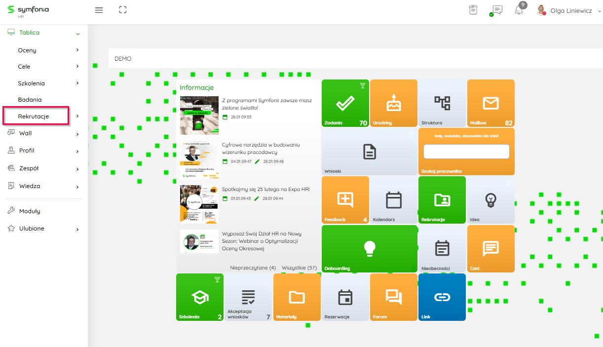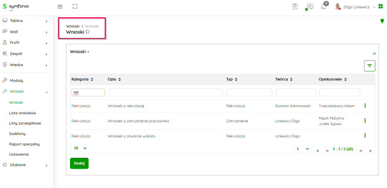 Po nadaniu tego prawa, widzisz w panelu i module Wnioski dodatkową zakładkę 'Rekrutacje". We wnioskach odsłania też możliwość przypisania wniosków z rekrutacji. Również do każdej rekrutacji osoba z tym prawem specjalnym jest traktowana jak przypisany rekruter.